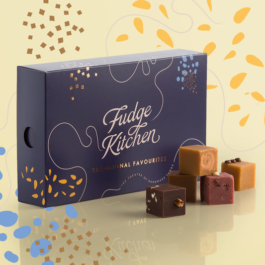 A masterclass in confectionery, we never compromise on quality. Everything we do is handmade from sharp salted fudges with a warm, melt on the tongue texture, to rich and deep-flavoured favourites, elegantly decorated by skilled artisans. No one does it quite like us. Our team of multi-award winning confectioners cut and decorate each individual piece of fudge by hand, selecting only the finest ingredients; sourcing locally when possible, and never using artificial colourings, flavourings, or preservatives. Honest ingredients, big flavour. Foil-embellished and fully sustainable and recyclable packaging make this a gift that not only looks and tastes good, but feels good too. It’s our promise to you, that every Fudge Kitchen product tastes and feels extra special.